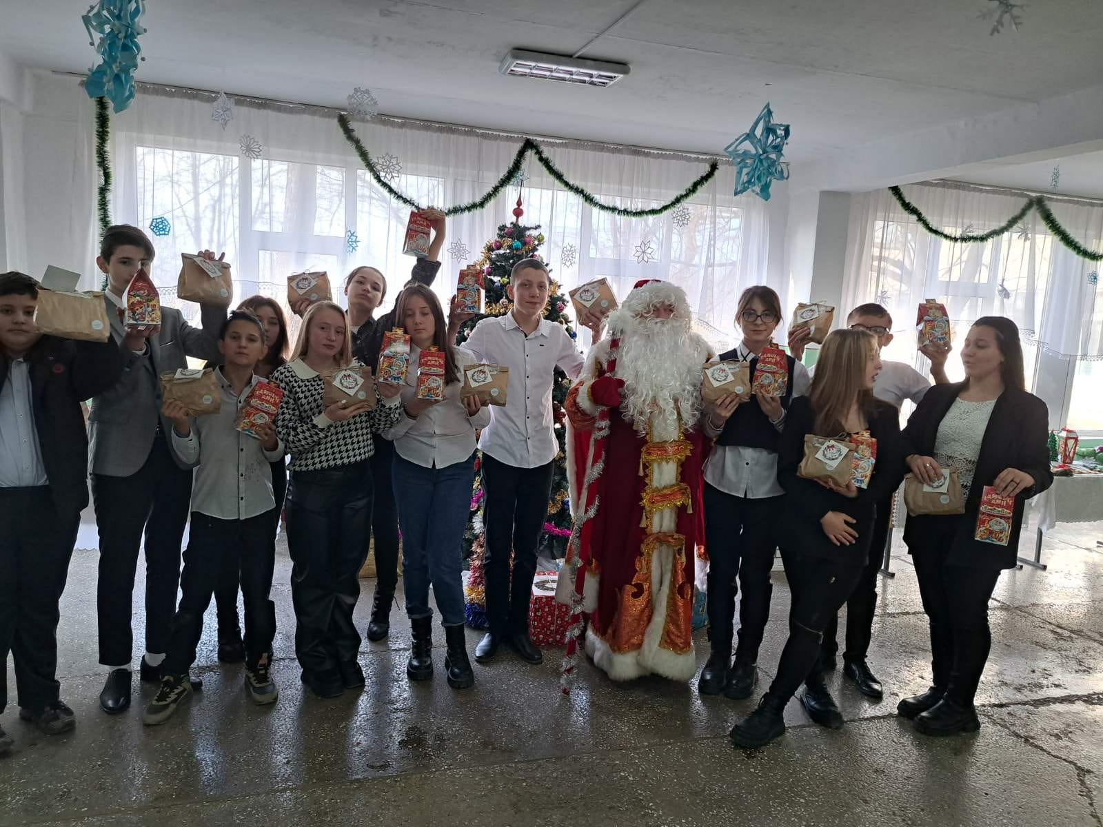 Toți elevii și cadrele didactice au primit în dar dulciuri cu prilejul sărbătorilor de iarnă
